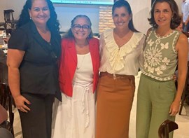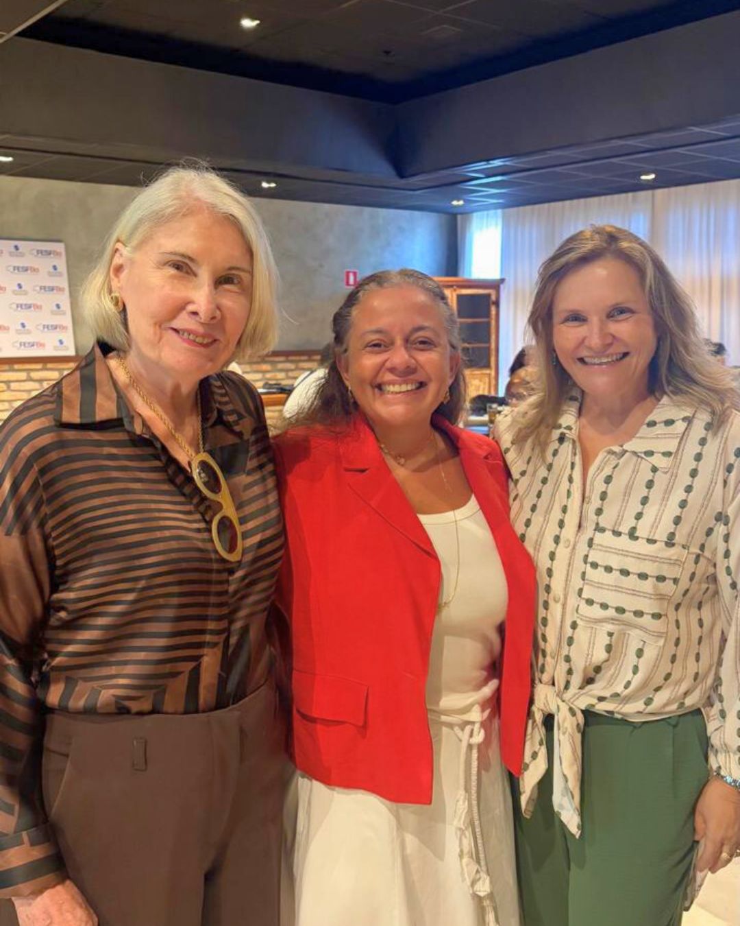 Nas imagens, Mariana Soliani (superintendente), Mônica Marques (gestora de Relacionamento Institucional) e Maurício França (gestor Financeiro) ao lado de representantes da FESFBA durante o evento.