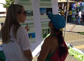 Na oportunidade a população foi orientada sobre cuidados com a saúde os olhos e também recebeu material contendo informações sobre a relação de doenças oftalmológicas e doenças oculares.